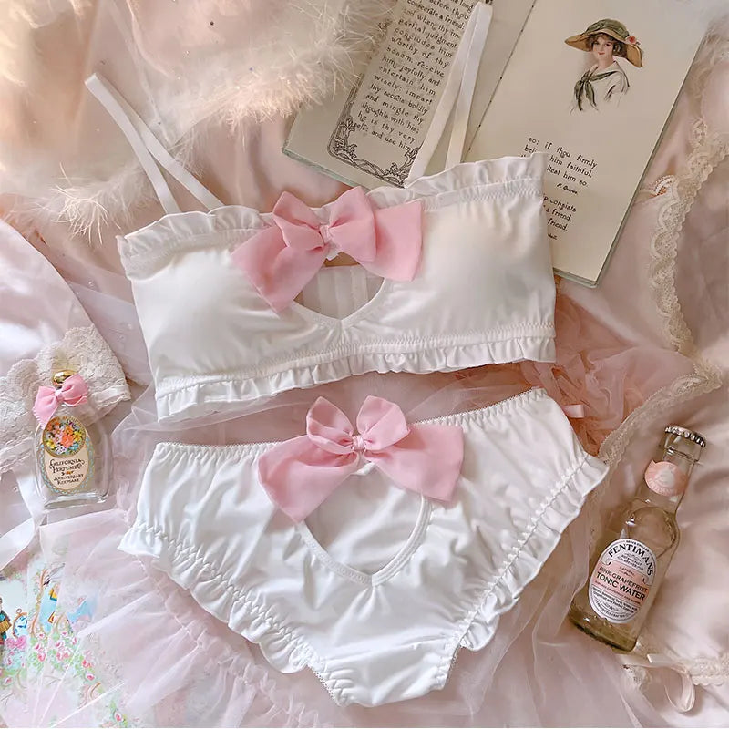 2-Piece Heart Coquette Lingerie Set with Pink Bow