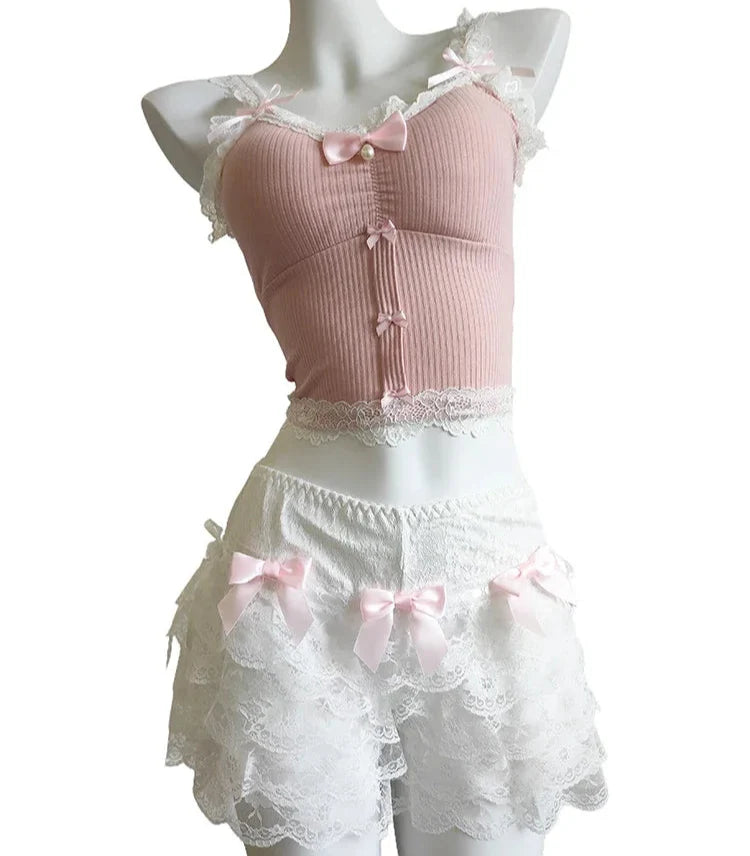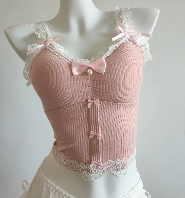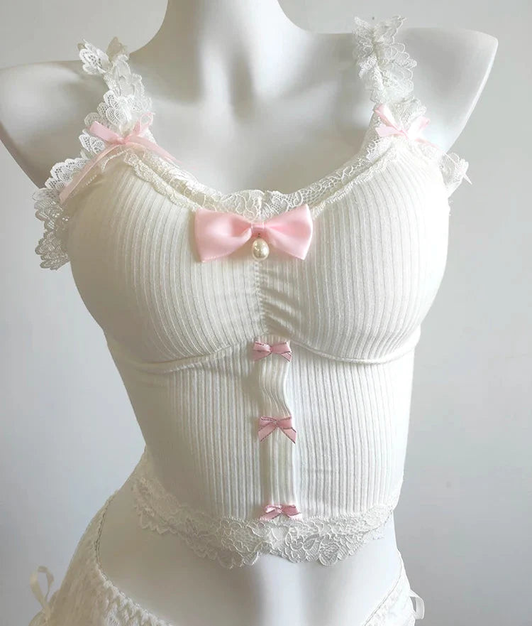 Bianca Belle Coquette Crop Top with Pearl Bow