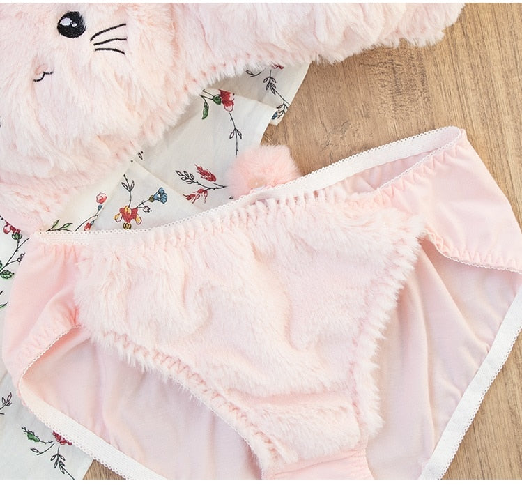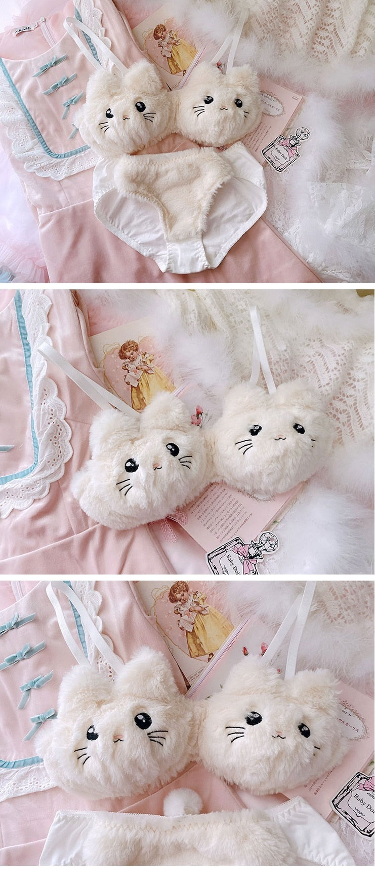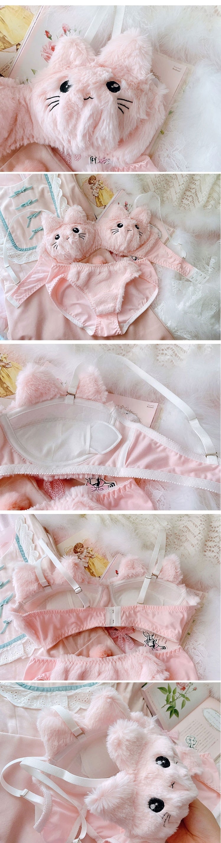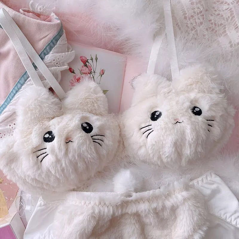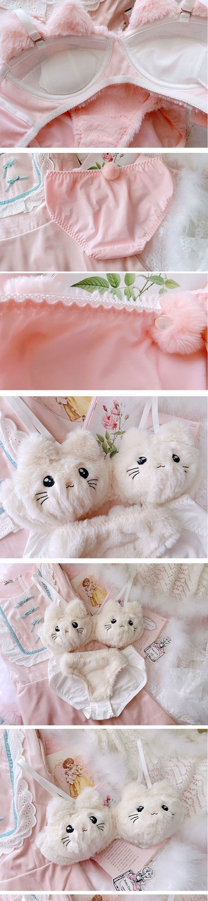 Soft Fuzzy Kitten Kawaii Princess Aesthetic Soft Sweet Kawaii 2-piece Lingerie Set featuring soft kitten bralette and matching bottoms.