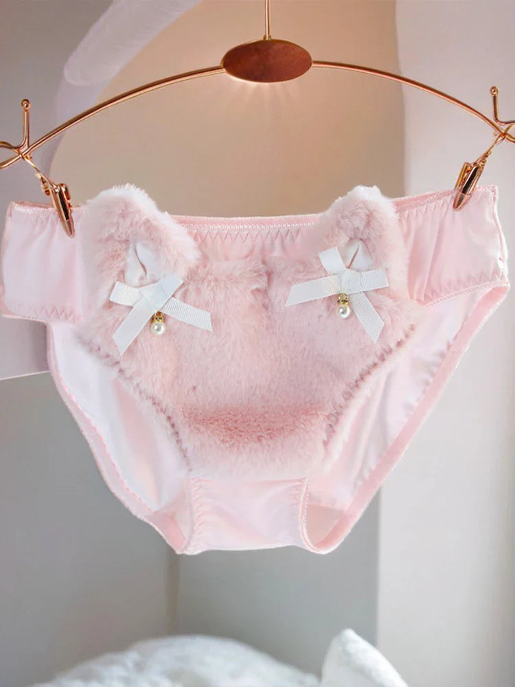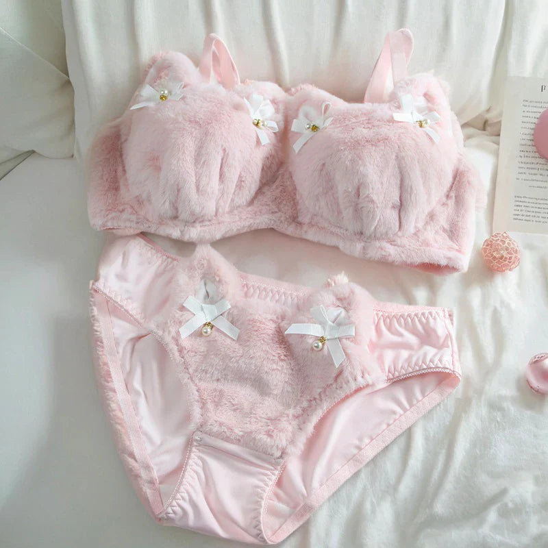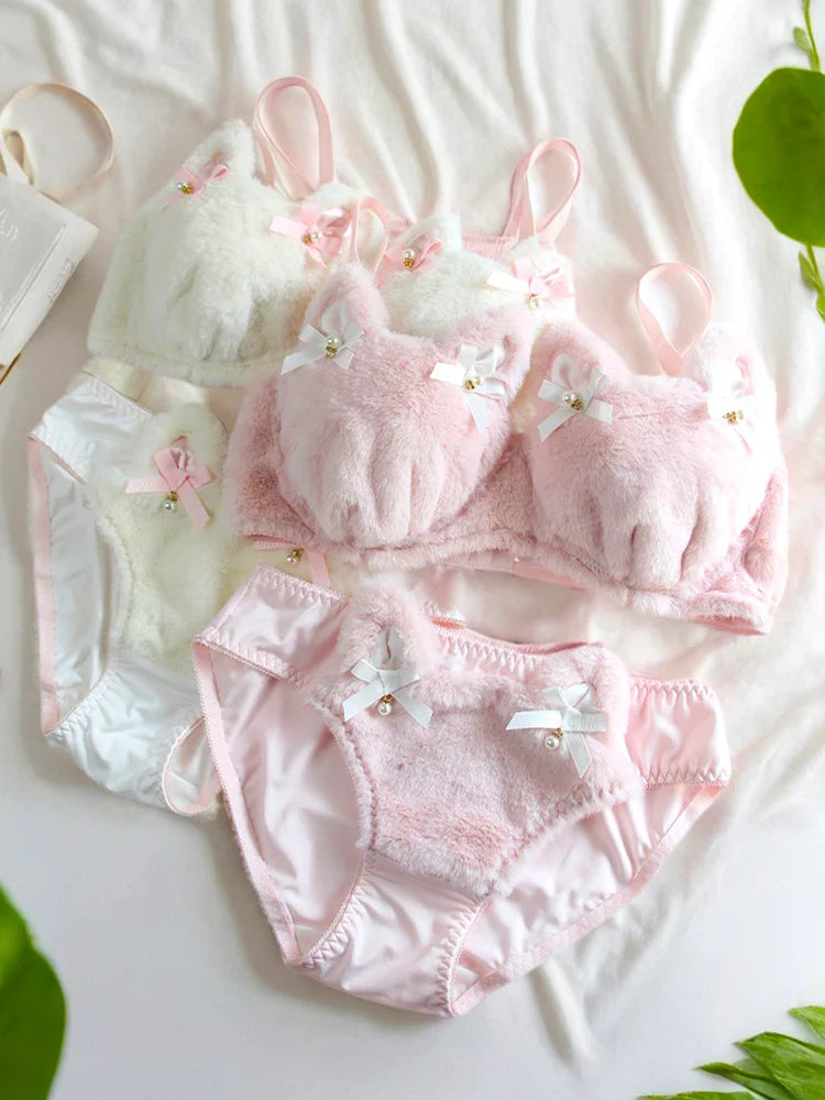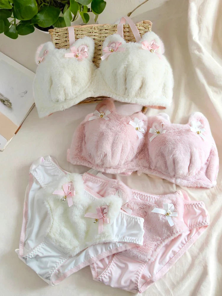 Soft Kawaii Kittens with Bow Lingerie Set featuring padded bra with bow decoration, ruffle accents and matching bottoms with cotton lining